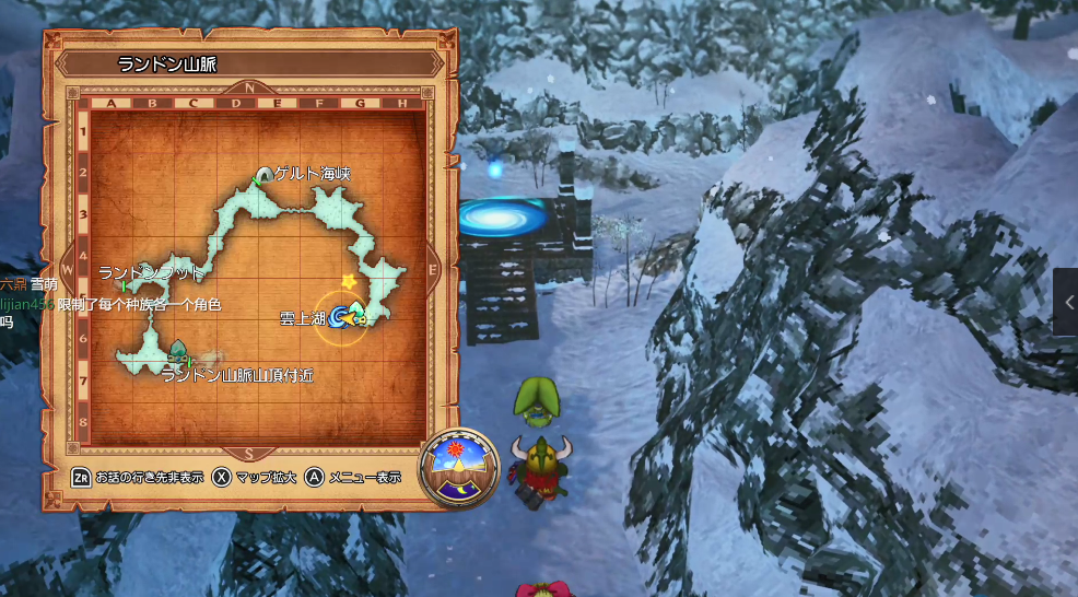 ▲云上湖(雲上湖) --> 用鲁拉石传送回古莲城区,从东边出城,来到古莲领东部地区(グレン領東),往南进入肯尔特海峡(ゲルト海峡),在门口可以登记鲁拉石。 --> 继续往南来到桥上宿屋(橋上の宿)。继续往东南,进入兰顿山脉(ランドン山脈)。 --> 往东南方向来到云上湖(雲上湖),在传送点前可以登记鲁拉石。 --> 进入云上湖,触发剧情,进入BOSS战。(参考等级:Lv18) --> 击倒BOSS后,入手关键道具グロリスのしずく。 ![]() 云上湖的入口 ![]() BOSS冰龙 |