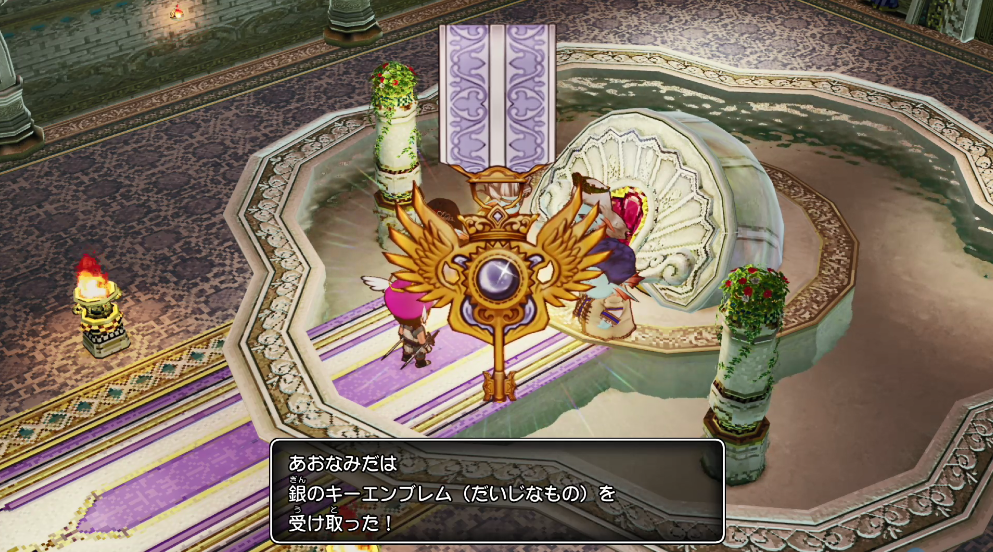 ▲威利纳徳(ヴェリナード) --> 返回鱼人2城-威利纳徳,前往城堡3层的女王之间,触发剧情。 --> オーディス离开队伍。获得银色键徽。 --> 离开城堡,触发剧情(再听一次女王的嗓音)。 ![]() 银色键徽 ![]() 再听一次女王唱歌 |