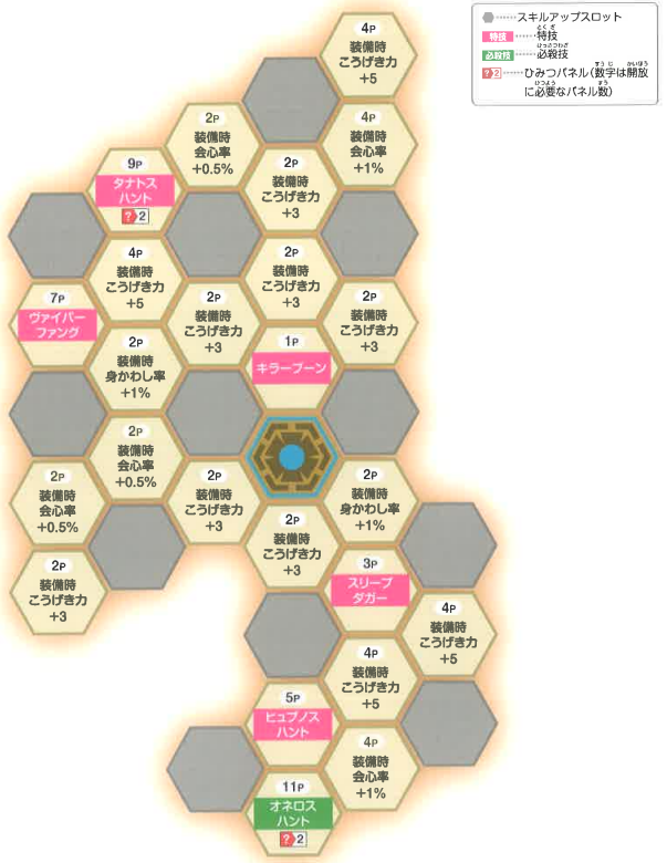 オネロスハント:对休息状态的敌人造成的伤害大幅度增加。包括摔倒等都是摔倒状态,然而这个技能需要消耗25%的蓄力条,所以并不是很使用。