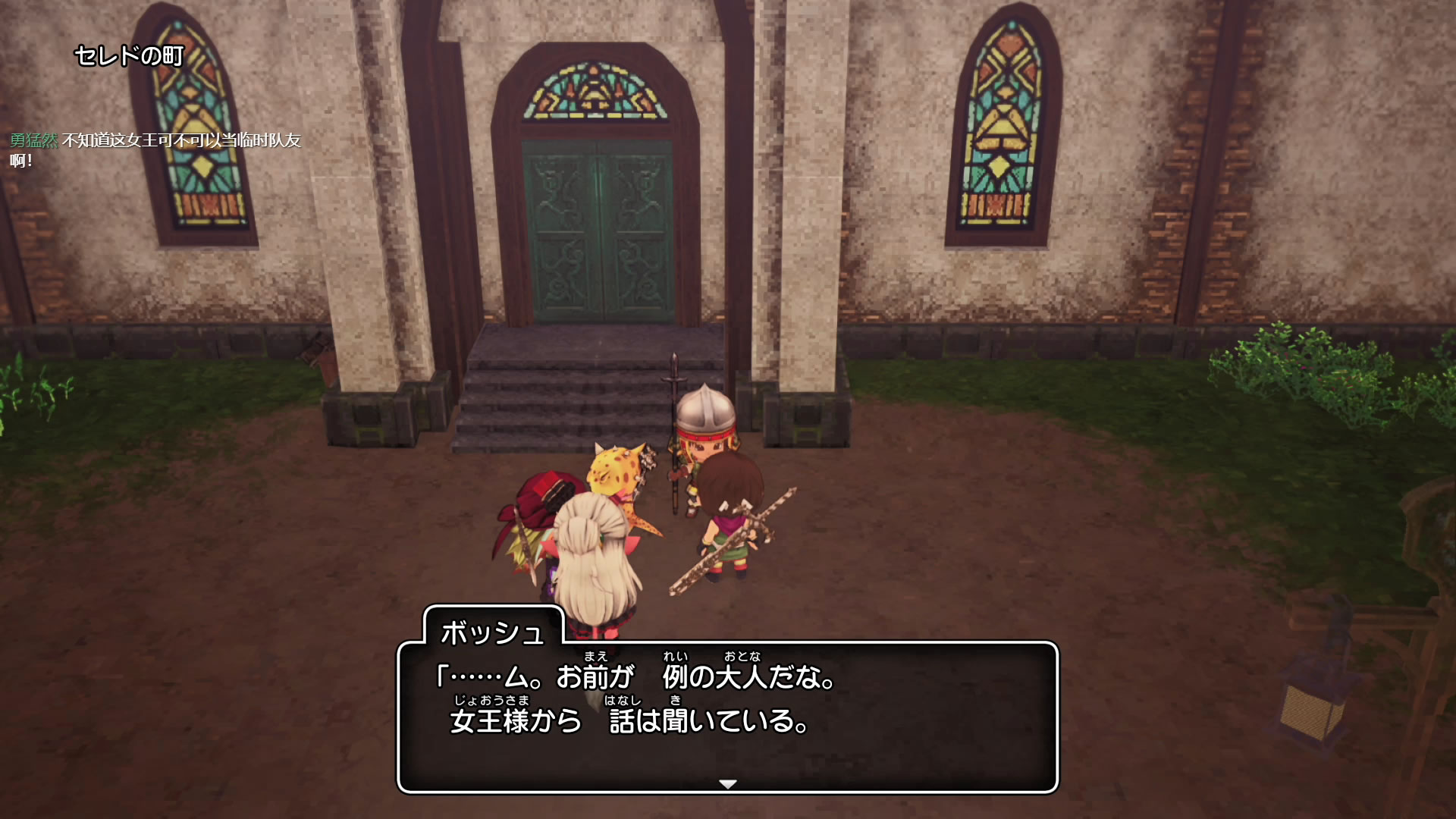 ▲ セレドの町 --> 离开メルサンディ村后往南出发,「メルサンディ穀倉帯」→「ローヌ樹林帯」→「セレドット山道」→「セレドの町」。路上可以解锁魔女の森和紅葉商店的鲁拉传送点。 --> 抵达「セレドの町」后,触发剧情。 --> 跟高台の教会(G2)入口处的ボッシュ对话。 --> 离开城镇,进入セレドット山道,在D7附近,讨伐怪物「バトルレックス」,直到得到任务道具「ドラゴンのしっぽ」。 --> 返回高台の教会,跟入口处的ボッシュ对话,交付任务道具,进入教会内部,触发剧情。 --> 前往教会2层,触发剧情。 --> 跟D4的女王对话,听取女王的计划后,触发剧情。 --> 走出高台の教会,触发剧情。フィーロ临时加入队伍。 ![]() 高台教会的ボッシュ ![]() 讨伐怪物「バトルレックス」 |