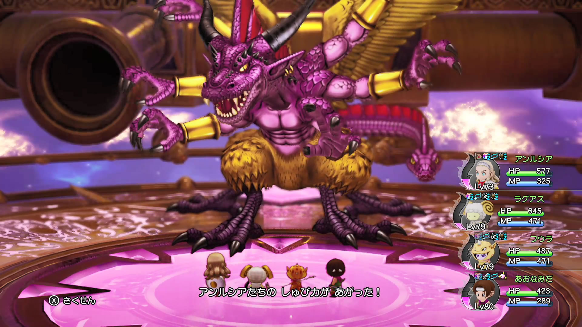 幻影之间 (1)在幻影之间,跟随道路前往最深处,在路上还可以看到安露西亚一家的幻影,但是可以不用管,继续前往深处的传送门(C1)。 (2)进入传送门后触发剧情,安露西亚公主归队。 (3)继续前进,通过传送门前往奈落之门,剧情结束后开始最终BOSS。注:BOSS三连战,一旦失败就要从头再来。 ![]() 安露西亚一家的幻影 ![]() 通过传送门前往奈落之门 注:BOSS的咒文完全抵抗buff、攻击完全抵抗buff、蓄力都可以通过风蒲的特技”零の洗礼“抵消。通过”聖女の風“防止被黒の斬撃秒杀。战斗胜利后HP、MP全恢复。 ![]() 多玛王子(剧情动画) ![]() 多玛王子(战斗界面) 注:BOSS的暗之衣需要通过勇者公主的必杀技”勇者の光“解除。通过魔法”マジックバリア“增强我方的魔法防御力。战斗胜利后HP、MP全恢复。 ![]() 大魔王マデサゴーラ ①初期形态:会使用あやしいひとみ强睡我方单体,通过マジックバリア增强我方魔法防御力,趁这个阶段把我方各种buff都加起来,尤其是キラキラポーン。 ②加速する世界:所有人的回合数+1,BOSS变成3连动,我方每人都2连动。这个时候其实对我方是比较有利的,每个人两动能做的事情很多。如果感觉到撑不住BOSS的攻击的话,甚至可以第一动攻击/回复,第二动可以防御。 ③不浄なる世界:所有人都容易被异常状态命中。在进入这个阶段之前,需要保证我方全体都有キラキラポーン的状态,否则BOSS一个异常吐息喷过来,可以直接宣告失败。由于阶段的切换是根据BOSS的血量来算的,所以在加速世界的时候,要保证我方的状态全满,再对BOSS进行输出,避免过早进入不净世界。另外,这个阶段BOSS也容易中异常,可以用拉里荷玛等咒文把BOSS给睡了,成功率很高。 如果采用睡BOSS的打法的话,可能会导致不必要的延长战斗时间。因为BOSS受到一定伤害之后,会通过技能来改变阶段。如果BOSS一直处于睡眠状态,可能我方造成的伤害已经溢出了当前阶段的BOSS血量,而BOSS还在睡,就没法改变阶段,会导致浪费时间。可以在BOSS受到1w左右伤害的时候(具体伤害没有实测,看感觉),确保我方的キラキラポーン状态都在,然后让BOSS行动一次,看看会不会切换阶段。 ④混沌たる世界:所有人的暴击率、咒文暴走率、回复魔力、造成的伤害增加。这个阶段可以对BOSS造成成吨的伤害,当然我方受到的伤害也会大幅度增加,一般来说很难顶住,容易翻车。另外,这个阶段BOSS仍然会释放异常状态,キラキラポーン永远不能停。可以使用必杀技”勇者の光“强控BOSS,然后打出巨额伤害。 战斗胜利后,欣赏通关动画。 ![]() 創造神マデサゴーラ ![]() 通关动画 |