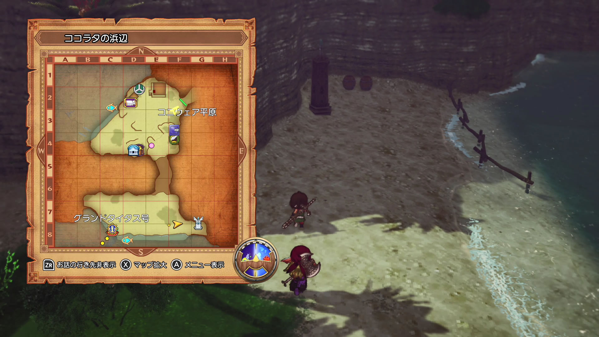 ▲ 着陆 --> 下船后,抵达「ココラタの浜辺」,穿过「コニウェア平原」,前往东边的「三門の関所」。 --> 抵达「三門の関所」,触发剧情。 ![]() 下船 ![]() 「三門の関所」 |