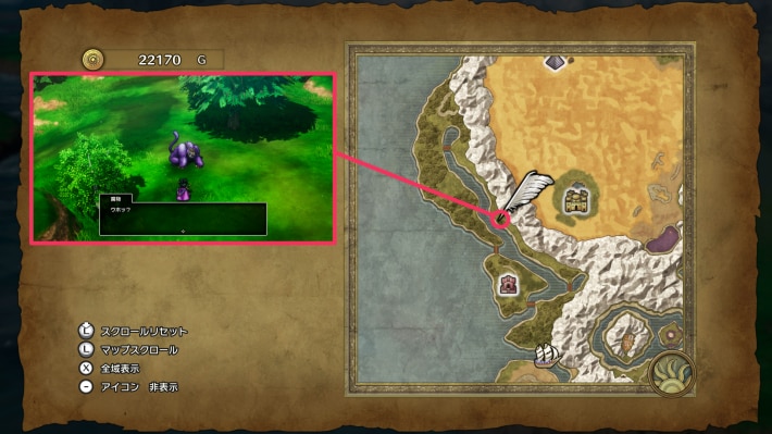 | 78 | 贝霍玛史莱姆 | 傍晚 | 龙女王城 | 龙女王城 | 需要复活不死鸟,如果队伍里没有魔物使则需要使用忍足特技 | ![]()  |