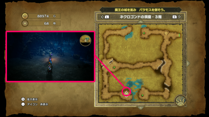 | 9 | 魔法师 | 白天、傍晚、夜晚 | 阿拉罕 | 指引洞窟地下2层北侧悬崖边的男子 | 需要拉之镜 | ![]()  |